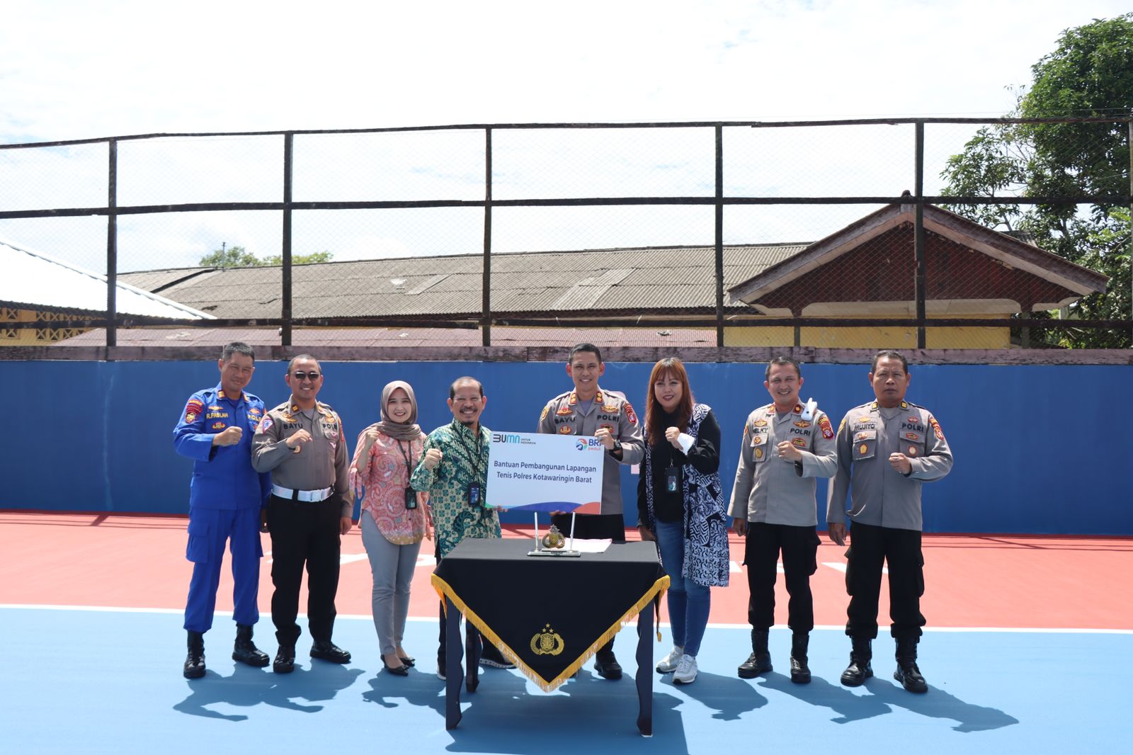 KOTAWARINGIN BARAT,ikagawanews.id – Kapolres Kotawaringin Barat AKBP Bayu Wicaksono, S.H., S.I.K., M.Si menerima bantuan dana Coorporate Social Responsibility (CSR) dari Bank BRI untuk renovasi lapangan tennis Manunggal Polres Kotawaringin Barat,Selasa 22 November 2022.