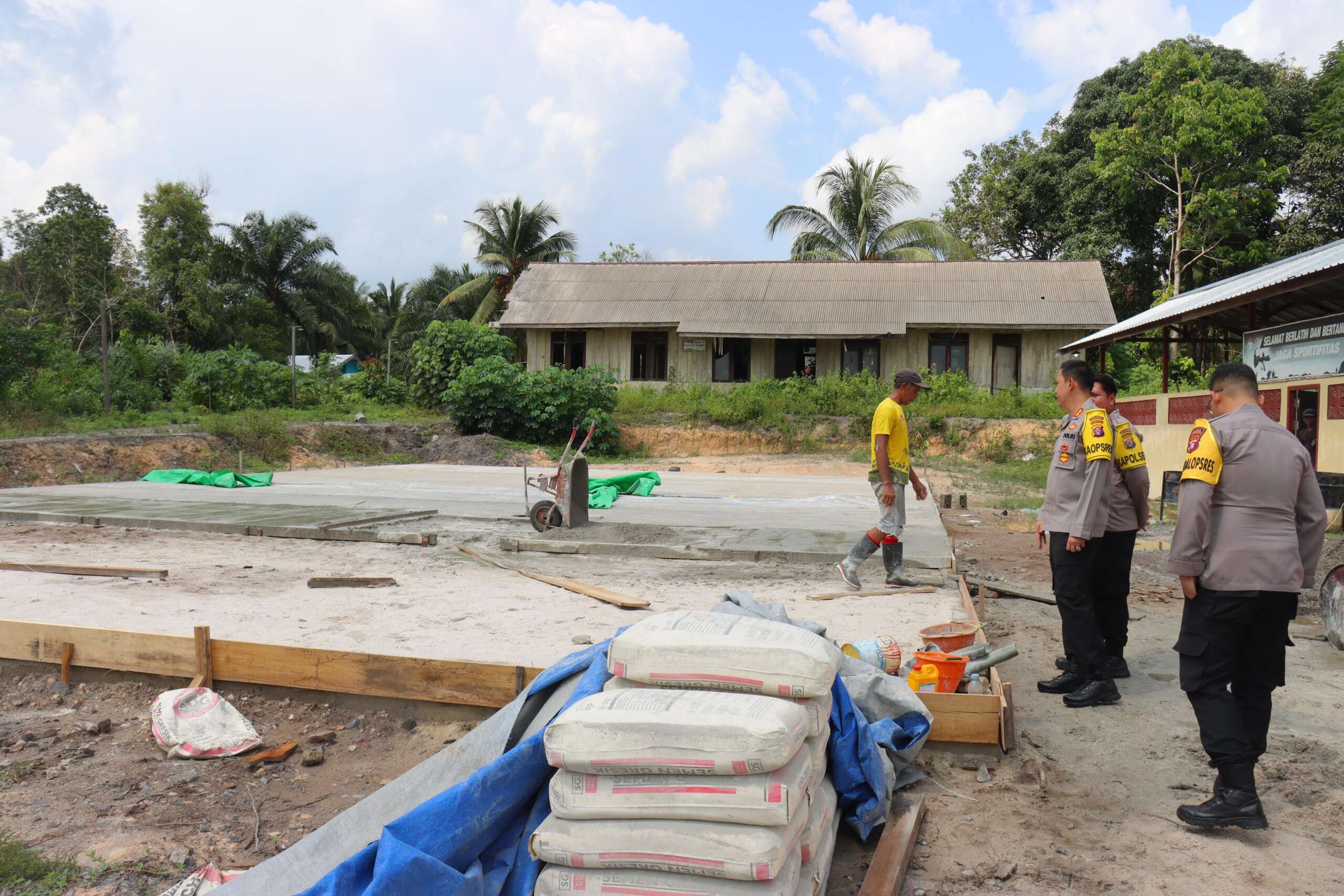 Kapolres Kobar Tinjau Langsung Pembangunan Lapangan Voli Dan Fasilitas Mako Polsek Kumai