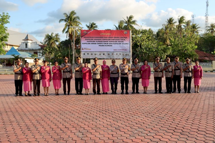 Dalam upacara tersebut, AKBP Agung melantik pejabat baru Kabagren Polres Kupang serta melakukan serah terima jabatan enam Kapolsek jajaran Polres Kupang, yakni Kapolsek Amarasi, Kapolsek Amfoang Timur, Kapolsek Sulamu, Kapolsek Amabi Oefeto Timur, Kapolsek Takari dan Kapolsek Kupang Barat.
