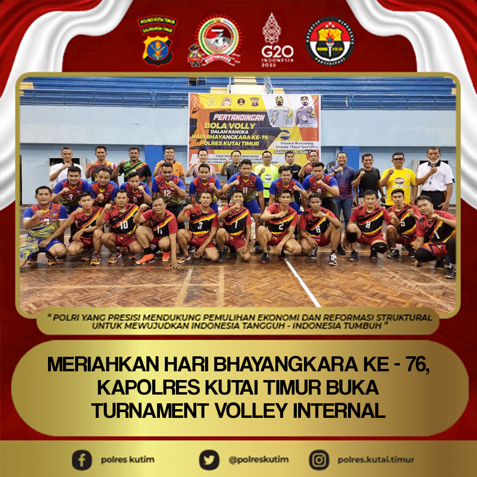 Turnamen bola voli ini bersifat internal, hanya diikuti oleh keluarga besar Polres Kutim dan jajaran. Ada 12 tim yang akan bertanding memperebutkan piala Kapolres Kutim dalam rangka Hari Bhayangkara ke-76 ini.(Red/Hum)