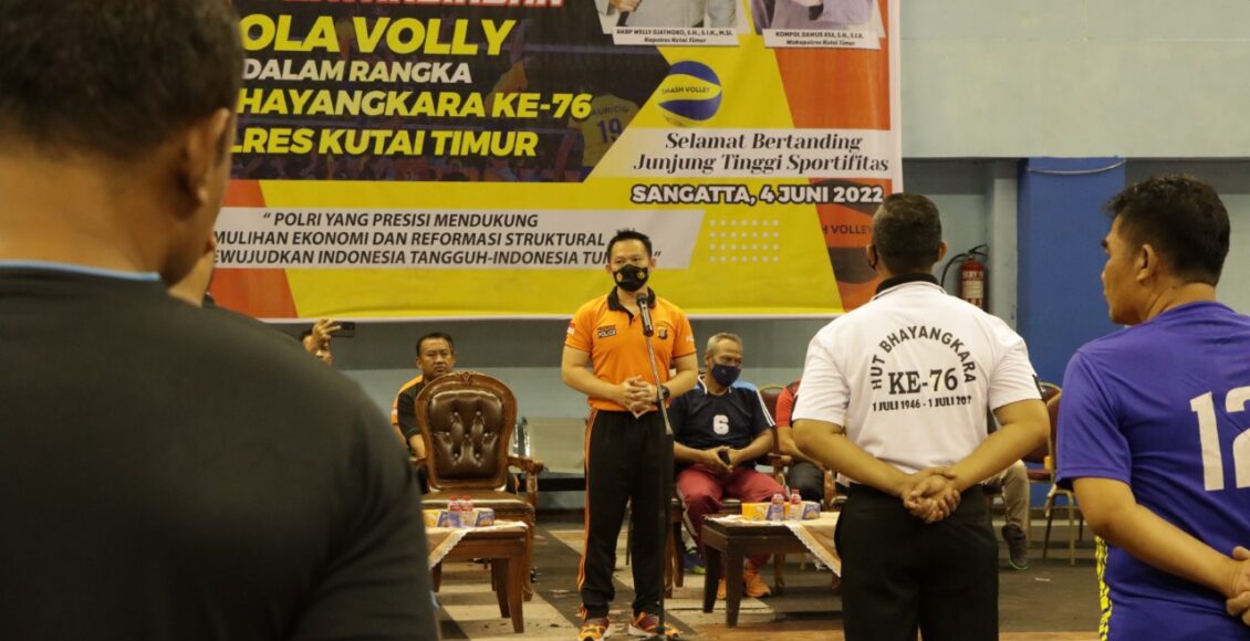 KUTAI TIMUR,ikagawanews.id  – Kapolres Kutim AKBP Welly Djatmoko membuka secara resmi turnamen bola voli Kapolres Cup dalam rangka menyambut Hari Bhayangkara ke-76 tahun 2022, Sabtu (6/4), di lapangan olahraga GOR Kudungga.