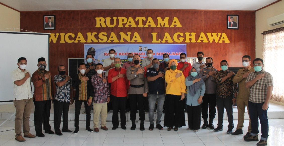 Dalam kegiatan tersebut, Kapolres Lhokseumawe bersama para pimpinan parpol, ketua pemuda dan komunitas masyarakat membahas tentang sosialisasi dan program percepatan vaksinasi Nasional.