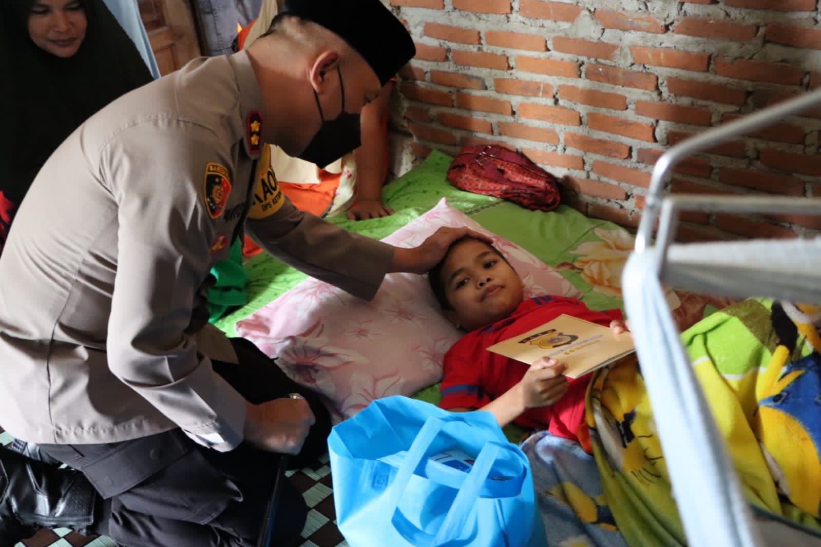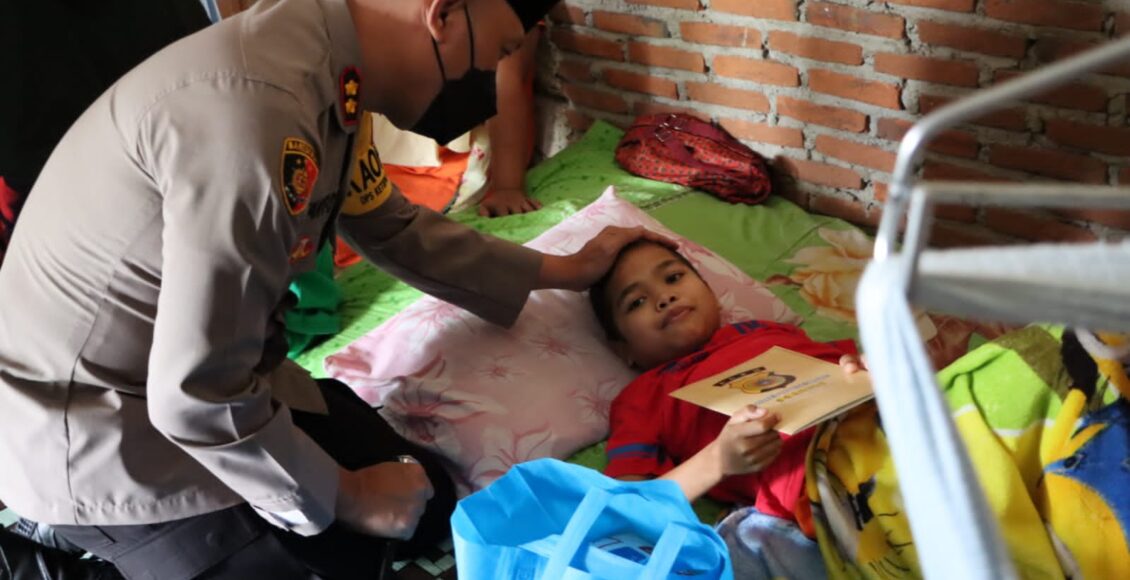 Di sini, Kapolres Lhokseumawe mengunjungi anak yang bernama Alvi Syarif (12 thn) yang sudah mengidap penyakit bocor ginjal 10 tahun lebih.