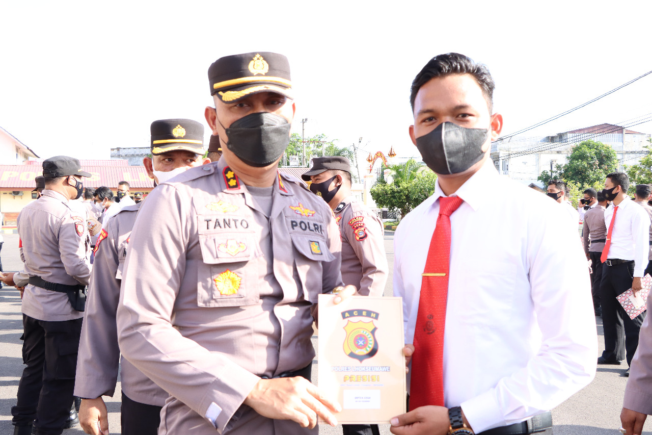 Pemberian hadiah tersebut dilakukan di lapangan apel Satya Haprabu Polres Lhokseumawe, Senin pagi, (11/05/2022).