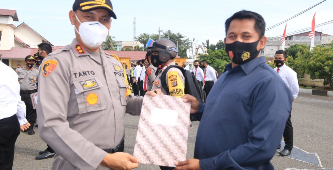 - 7 Personil Sat Res Narkoba, atas keberhasilan melakukan pengungkapan kasus narkoba di Wilkum Polres Lhokseumawe dengan barang bukti narkotika jenis sabu sebanyak satu kilogram dan Narkotika jenis ganja sebanyak 32 kilogram.