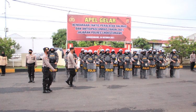 Kapolres Lhokseumawe AKBP Eko Hartanto SIK, MH melalui Kasubag Humas Salman Alfarisi SH, MM mengatakan, dalam apel tersebut, Kapolres Lhokseumawe juga melakukan pengecekan kendaraan taktis pengendalian massa (Dalmas) dan kesiapan personel jajaran dalam rangka menghadapi unjuk rasa serta aksi kriminalitas di wilayah hukum Polres Lhokseumawe.