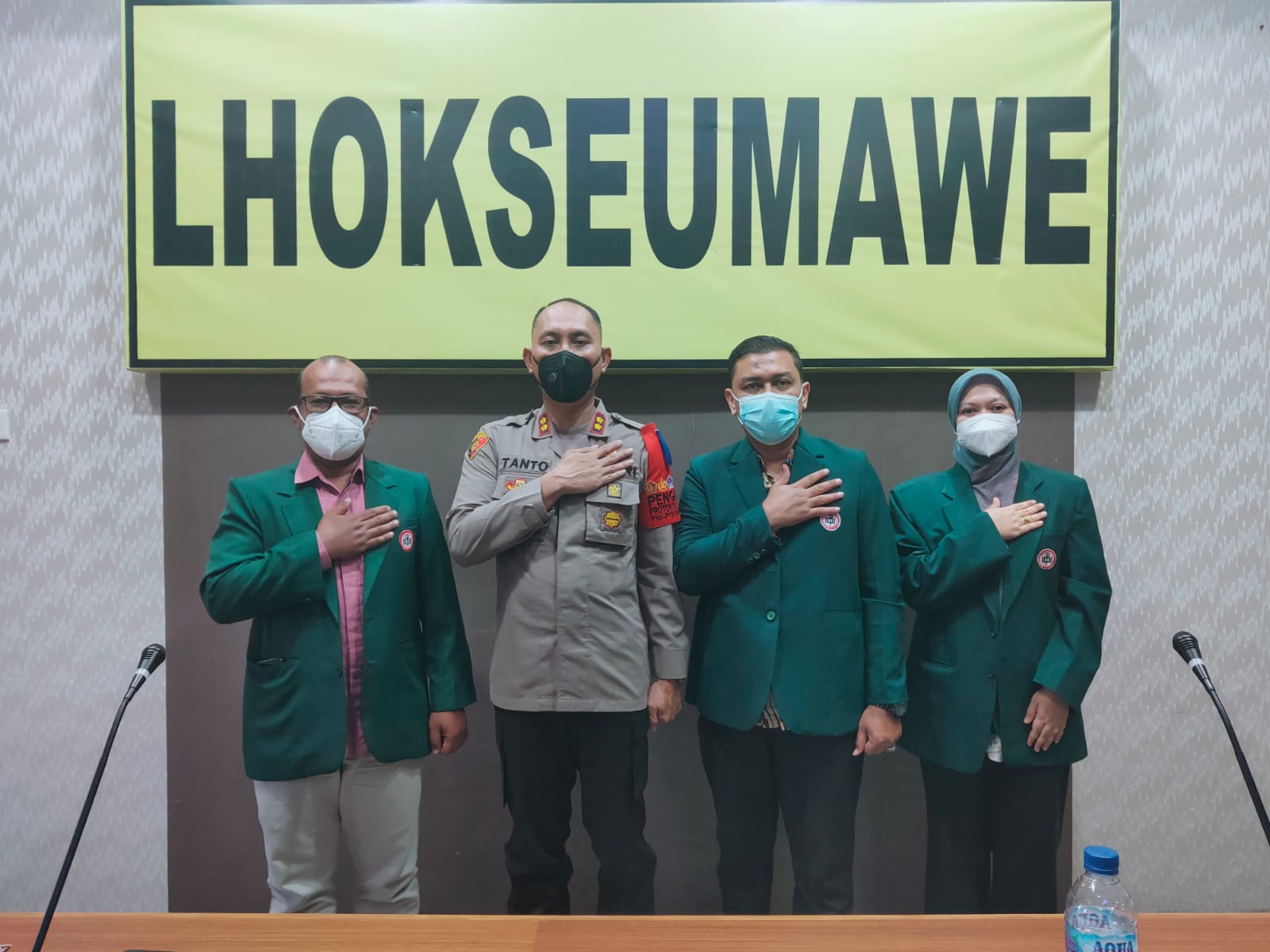 Pada kesempatan tersebut, ketua IDI Kota Lhokseumawe juga memberi apresiasi terhadap program vaksinasi Goes To School dan Goes To Campus yang dilaksanakan Polres Lhokseumawe bekerjasama dengan Dinas Kesehatan.