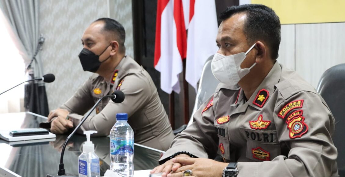 LHOKSEUMAWE,ikagawanews.id  – Kapolres Lhokseumawe mengikuti video comfrence (vicon) hasil pencapaian Program Bantuan Tunai untuk Pedagang Kaki Lima dan Warung (BTPKLW) dan laporan vaksinasi serentak dalam Rangka Hari Bhayangkari tahun 2022 di Aula Presisi Polres Lhokseumawe, Selasa (31/5/20220 pagi.
