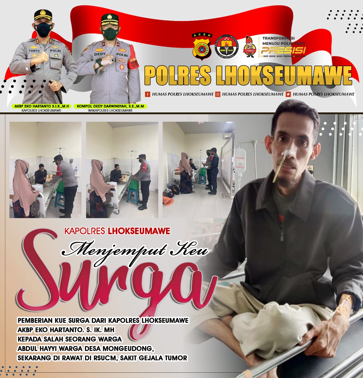 “Bapak Kapolres Lhokseumawe juga berpesan agar Abdul Hayyi sabar dan tabah dalam menghadapi cobaan ini, semoga bantuan yang diberikan dapat meringankan beban keluarga,” pungkasnya AKP Erpansyah Putra.