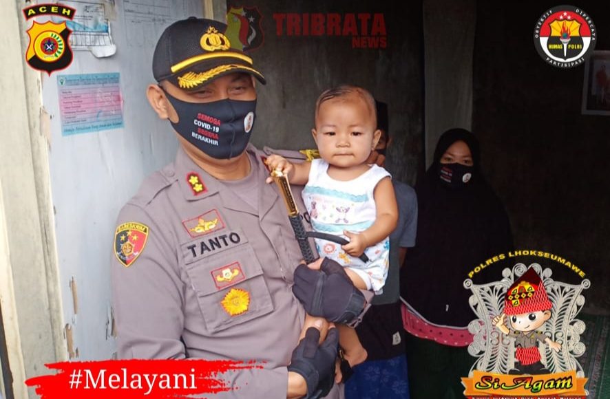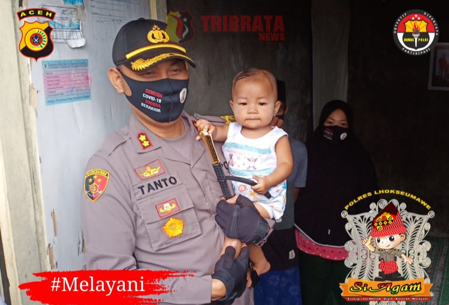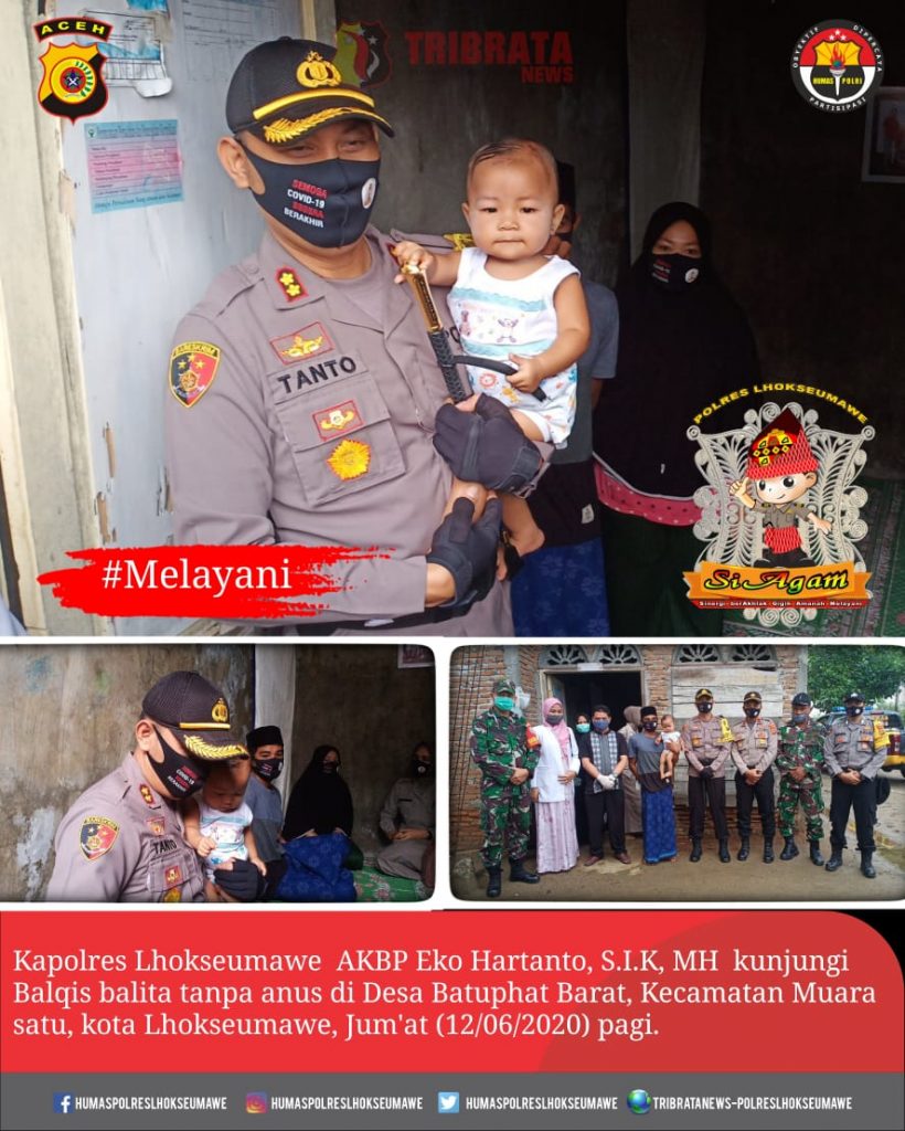 LHOKSEUMAWE,IKAGAWANEWS.ID – Kapolres Lhokseumawe AKBP Eko Hartanto, S.I.K, MH kunjungi Balqis balita tanpa anus di Desa Batuphat Barat, Kecamatan Muara satu kota Lhokseumawe, Jum’at (12/06/2020) pagi.