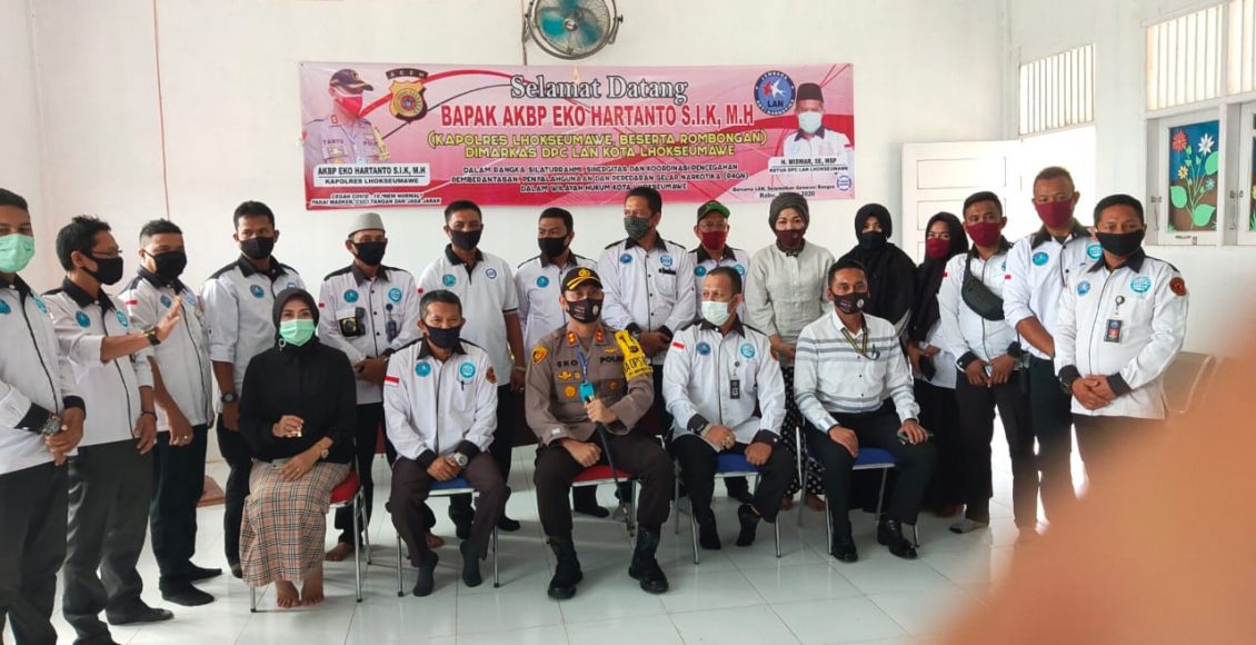 Kapolres Lhokseumawe AKBP Eko Hartanto, S.I.K, MH dihadapan pengurus dan anggota LAN mengungkapkan apresiasinya kepada DPC LAN Kota Lhokseumawe yang diketuai Oleh.H. Miswar, SE, MAP