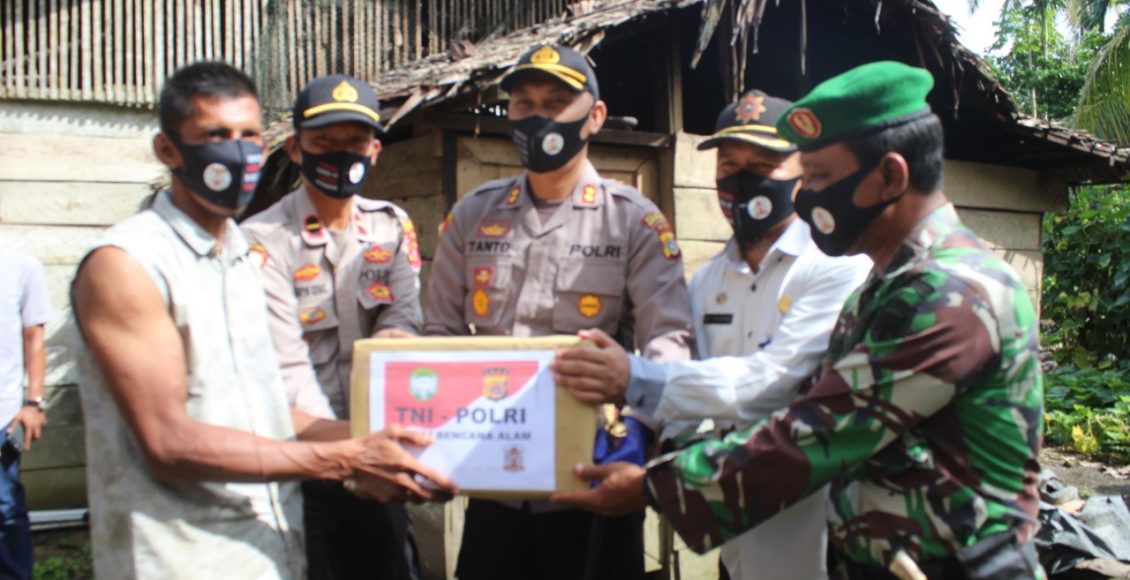 Selain itu Kapolres Lhokseumawe juga menyerahkan bantuan secara simbolis kepada salah seorang warga an. Muhammad yang rumahnya rusak tertimpa pohon tumbang akibat angin kencang.