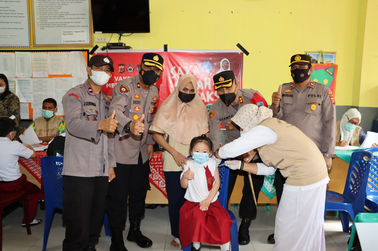 Kapolres Lhokseumawe Pantau Vaksinasi Anak di SDS Budi Dharma, Puluhan Murid Ikut Mendaftar