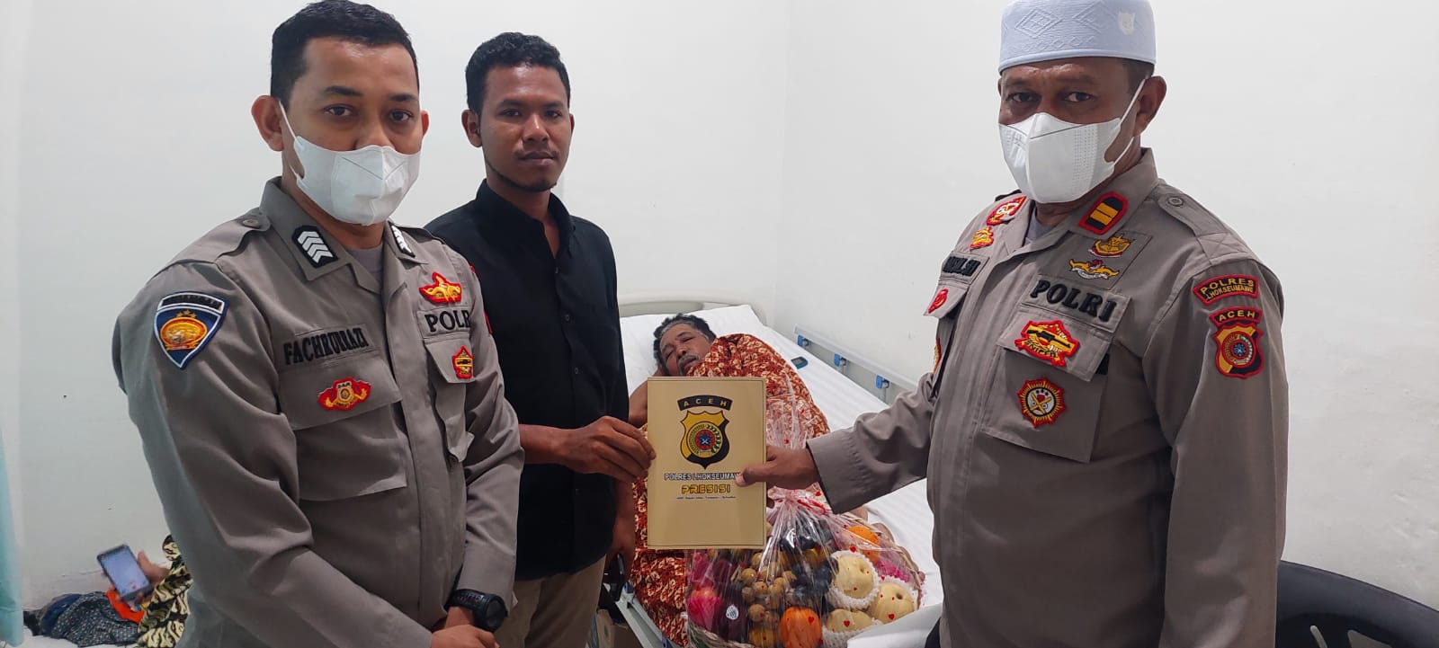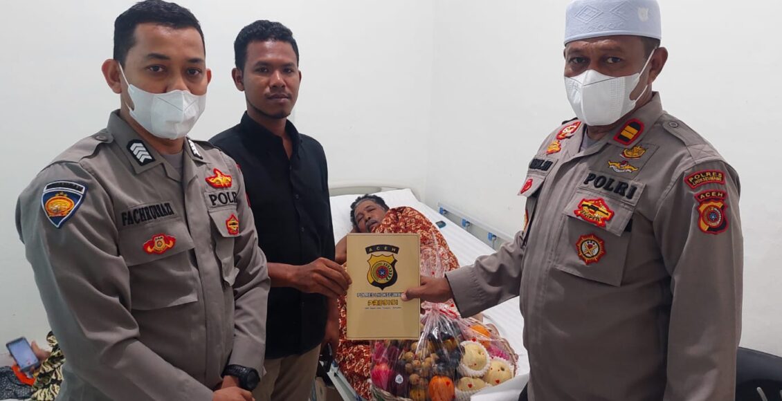 Kapolres Lhokseumawe Serahkan Bantuan “Kue Surga” Kepada Warga Blang Mangat Dirawat di RS Arun Medical Center