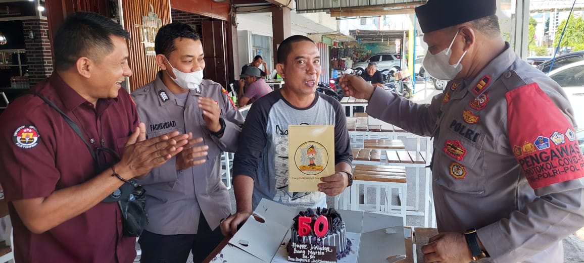 “Kapolres Lhokseumawe berhalangan hadir karena ada kesibukan dan ini ada kue untuk kita rayakan bersama ulang tahun ke 50 Bambang Iskandar Martin,” ujar Iptu Faisal SH.