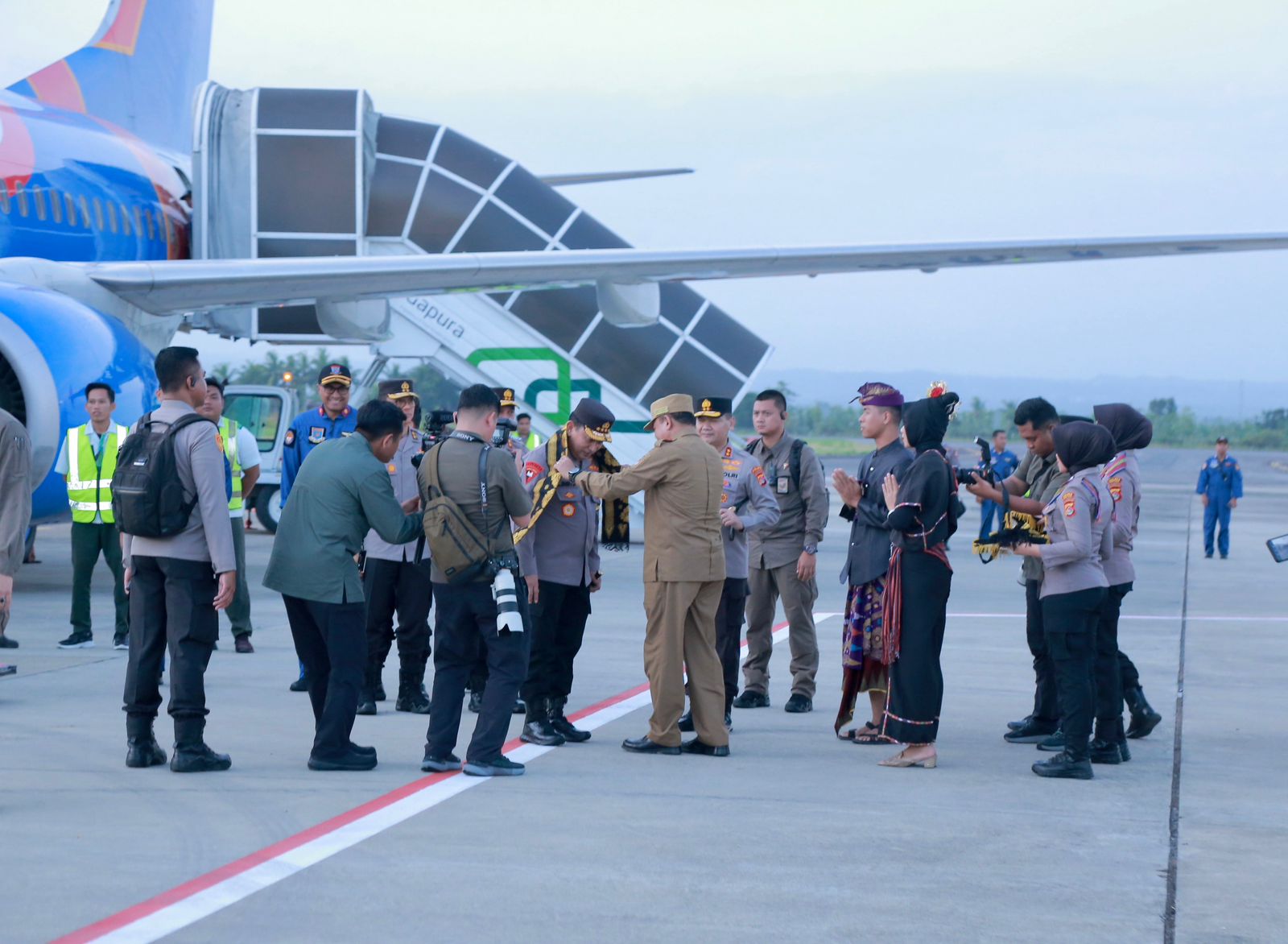 Kedatangan Kapolri juga di sambut oleh Pj. Gubernur NTB, Kepala Kejaksaan Tinggi NTB, Para PJU Polda NTB dan para Kapolres jajaran Polda NTB.