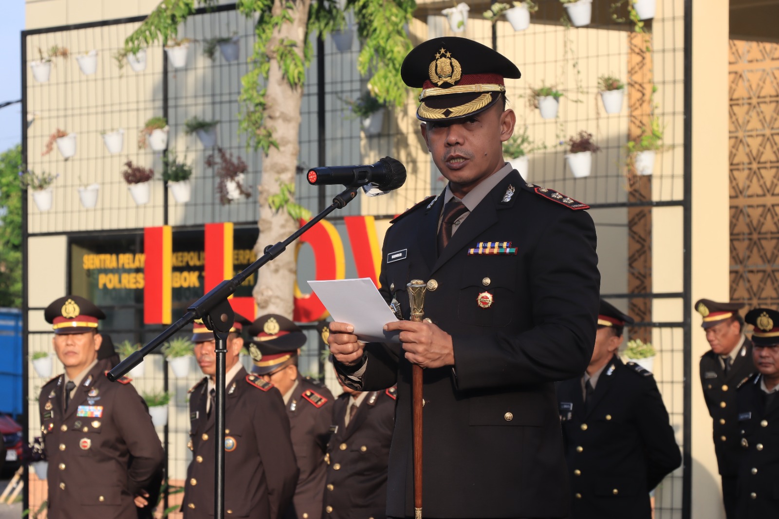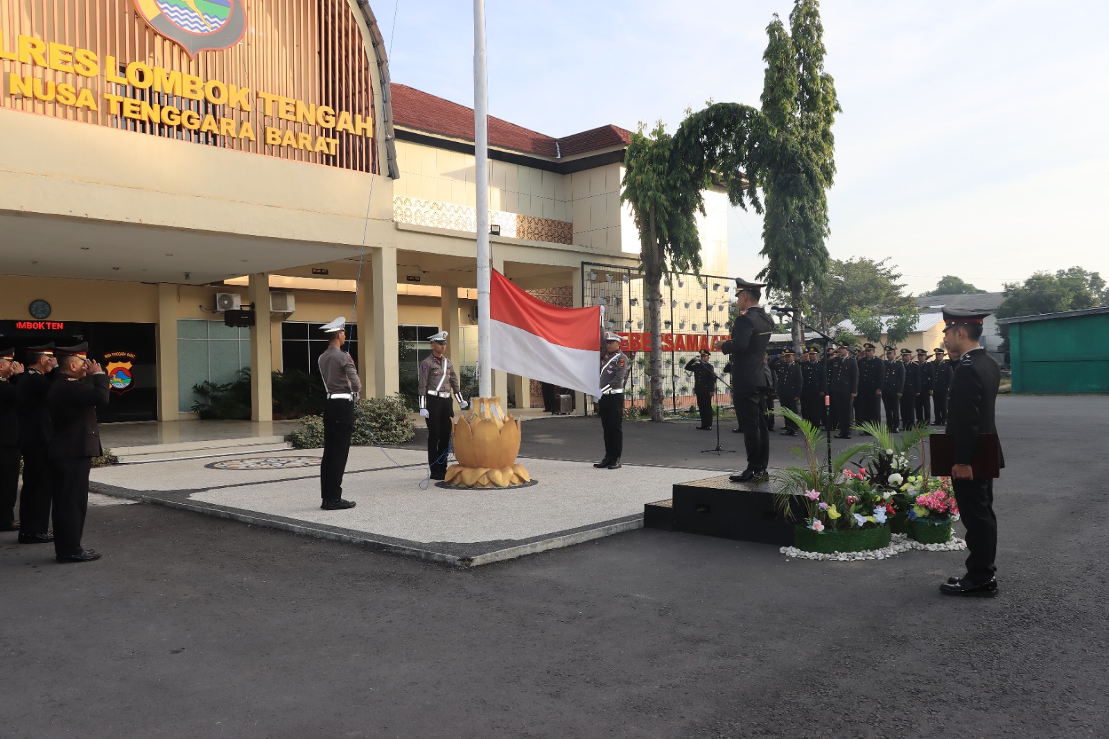 Kegiatan tersebut dipimpin langsung oleh Kapolres Lombok Tengah AKBP Iwan Hidayat, SIK selaku inspektur upacara, diikuti oleh para pejabat utama polres, para perwira dan bintara serta ASN Polri.