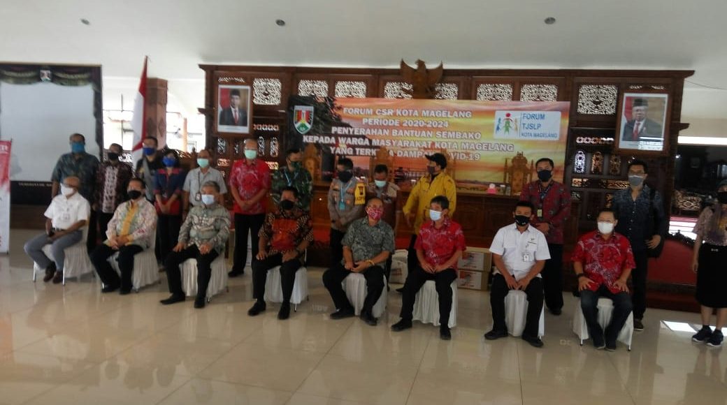 Hadir dalam penyerahan bantuan sembako kepada masyarakat yang membutuhkan,Wali Kota Magelang Ir. H. Sigit Widyonindito MT, Dandim 0705/Magelang Letkol Czi Anto Indriyanto S. Sos,Kapolres Magelang Kota AKBP Nugroho Ari Setyawan S.I.K, MM, C.F.E, Sekda Kota Magelang Drs Joko Budiyono MM selaku Ketua CSR Kota Magelang, Inspektorat, Kabag, Kepala OPD dan Kepala Finas terkait,Pengurus Forum CSR Kota Magelang, Camat dan Lurah se Kota Magelang, Ketua Pengurus dan anggota PSMTI Kota Magelang / Dafit Hermanjaya, Direktur BUMD atau yang mewakili,Para pimpinan Perbankan