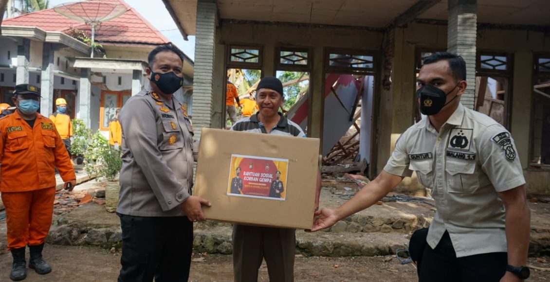 Kapolres Malang bersama dandim 0818 lanjut ke Dsn. Bendosari Ds. Kepatihan, Kec. Tirtoyudo, Kab. Malang melakukan giat penyerahan bansos kepada warga terdampak gempa bumi .(Red/Hum)