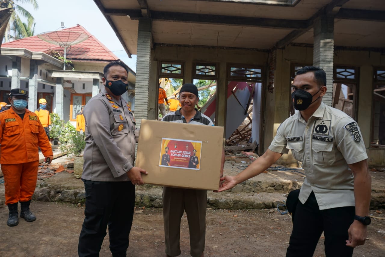 Melaksanakan kegiatan Bansos dan Kerjabakti dilokasi yang terdampak bencana alam gempa bumi, Selasa 13 April 2021.