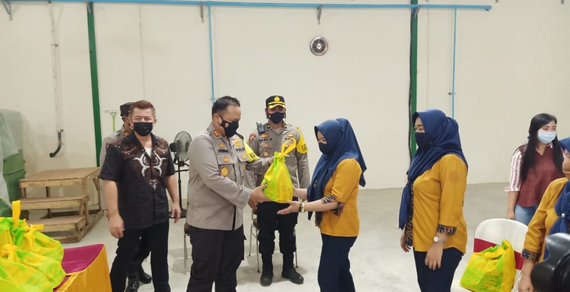 Meninjau kegiatan operasional para karyawan sesuai dengan protokol Kesehatan dan  Penyerahan bingkisan.(Red/Hum)