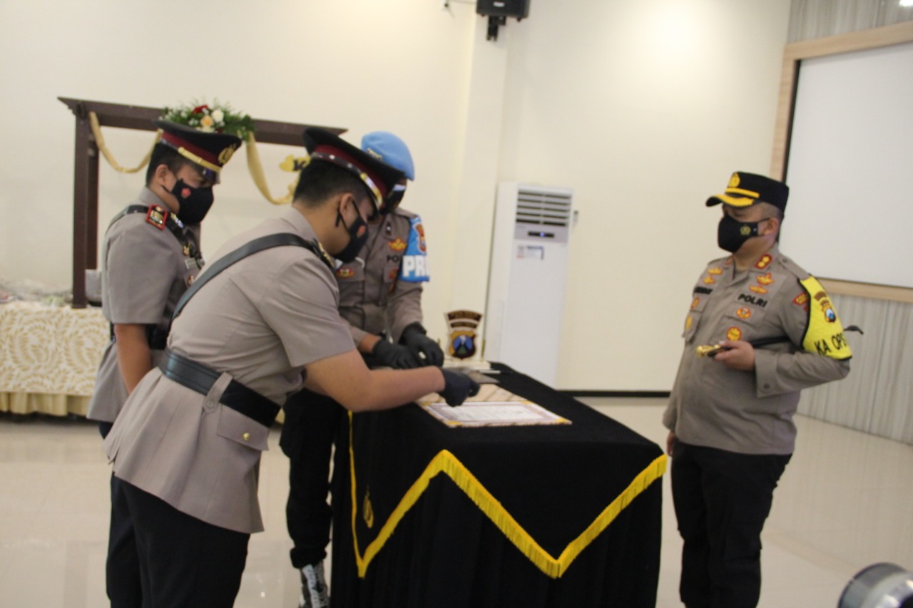 Pembacaan Keputusan Kapolda Jatim nomor dan lampiran nomor : ST/379/II/KEP/2021 tgl 26 Februari 2021 ttg pemberhentian dari dan pengangkatan Jabatan di lingkungan Polda Jatim