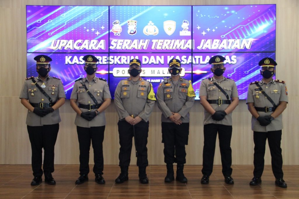 MALANG,IKAGAWANEWS.ID – Kepala Kepolisian Resort (Kapolres) . AKBP HENDRI UMAR, S.I.K., M.H Melaksanakan Upacara Serah Terima Jabatan Kasat Reskrim dan Kasat Lantas Polres Malang yang di Pimpin Kapolres Malang di gedung Sanika Satyawada Polres Malang, Selasa 23 Maret 2021.