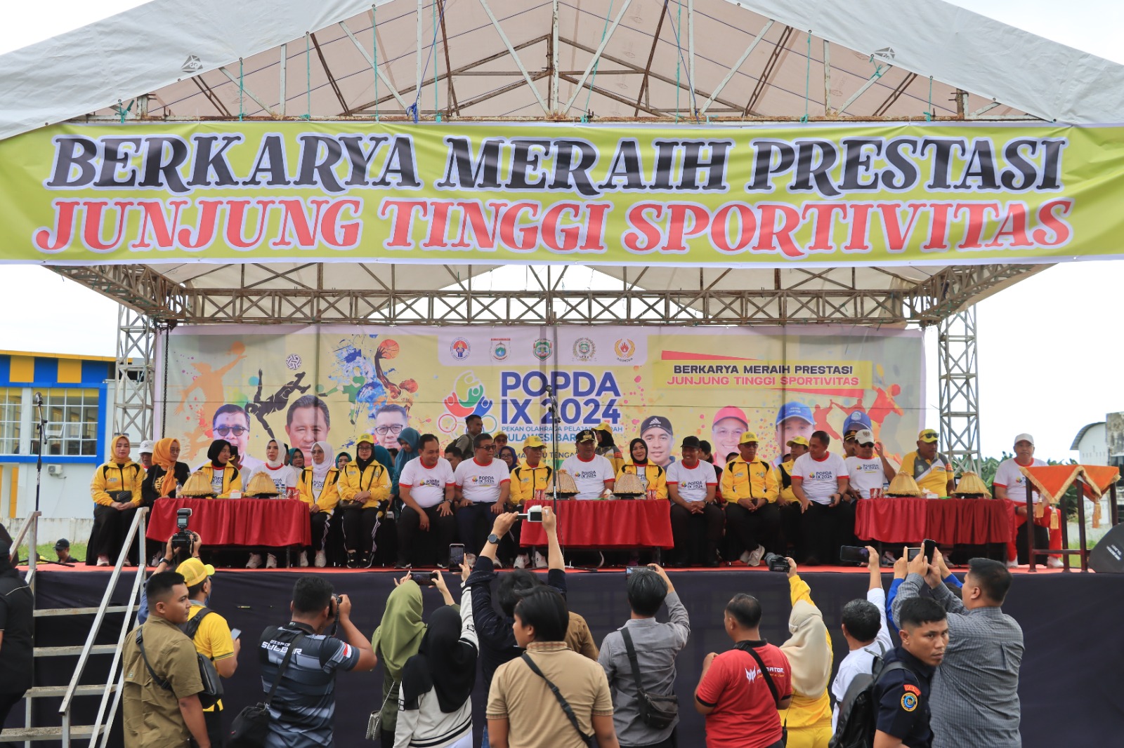 Popda IX 2024 di Alun-Alun KTM Tobadak ini akan berlangsung selama satu minggu, di mana berbagai cabang olahraga akan dipertandingkan dengan melibatkan ratusan pelajar dari berbagai sekolah di Sulawesi Barat.(Humas Polres Mateng)