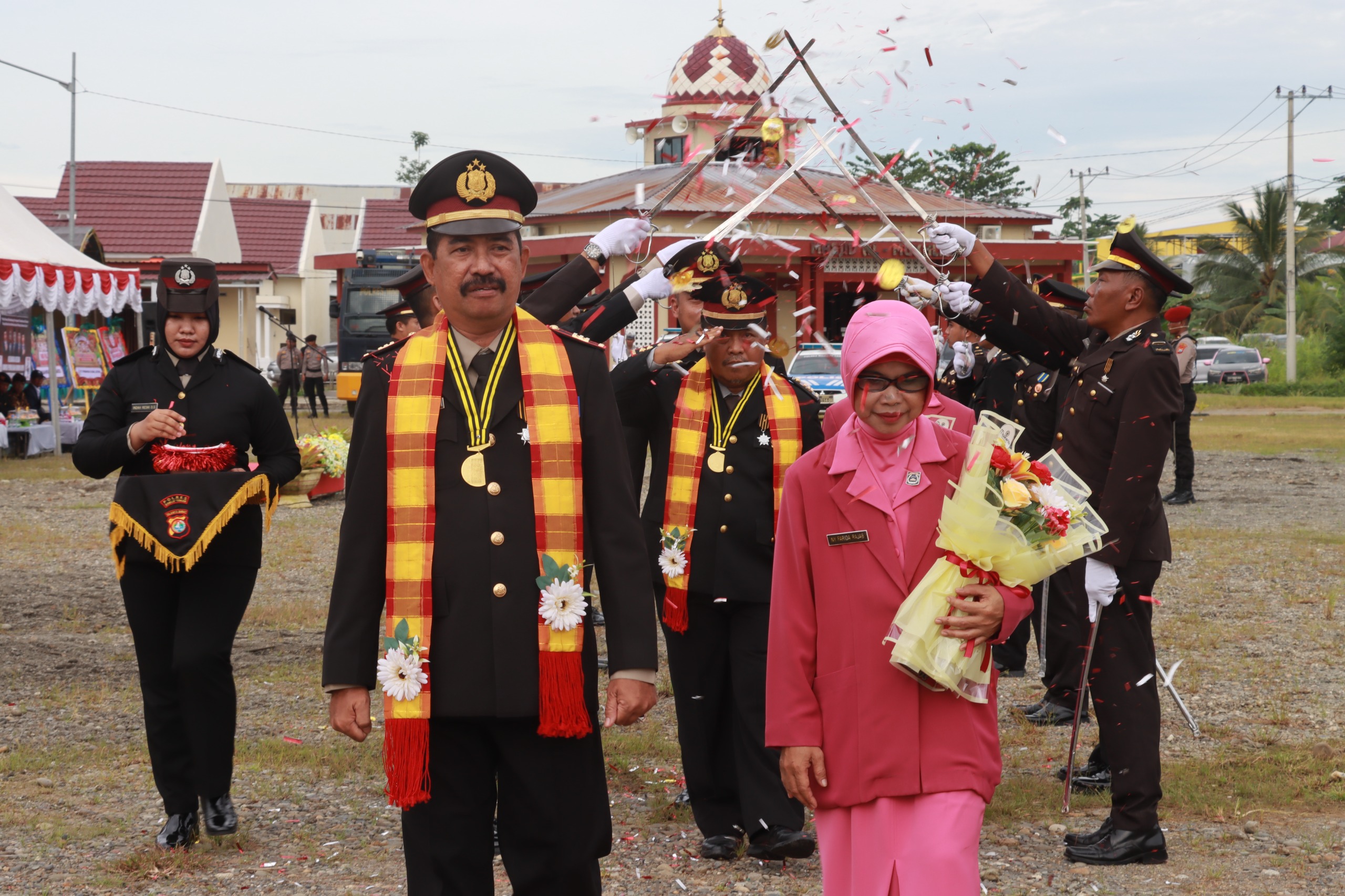MAMUJU TENGAH,ikagawanews.id – Sebagai bagian dari rangkaian peringatan Hari Bhayangkara ke-78, Kapolres Mamuju Tengah AKBP Amri Yudhy, didampingi Ibu Ketua Bhayangkari Cabang Mamuju Tengah Ny. Shinta Amri Yudhy, menggelar tradisi pelepasan purna bakti untuk 2 (dua) personel berdedikasi. Upacara ini berlangsung di halaman Mapolres Mamuju Tengah. Senin (1/7/2024).
