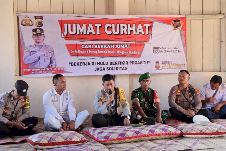 Kapolres Manggarai, AKBP EDWIN SALEH, S.I.K. M.H, mengucapkan terima kasih atas sambutan hangat dari masyarakat Karot Curu dan para tokoh adat. Beliau menjelaskan bahwa kegiatan “Cari Berkah Jumat” merupakan program Kapolri yang dilaksanakan di seluruh Indonesia, baik di tingkat Polda, Polres, maupun Polsek. Tujuannya adalah untuk mempererat hubungan dengan masyarakat dan saling berbagi informasi terkait tindak pidana.