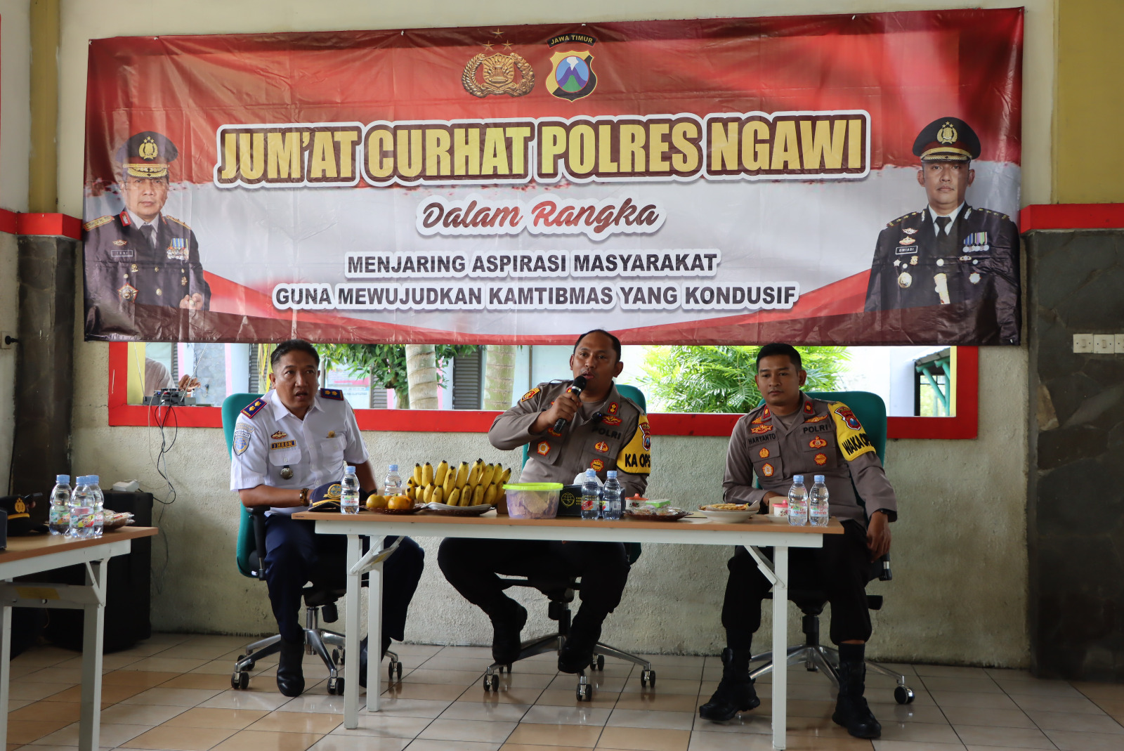 Polres Ngawi mendengarkan persoalan yang ada di masyarakat, serta memberikan solusi, apabila di luar kewenangan kepolisian akan disampaikan kepada pihak yang berwenang.