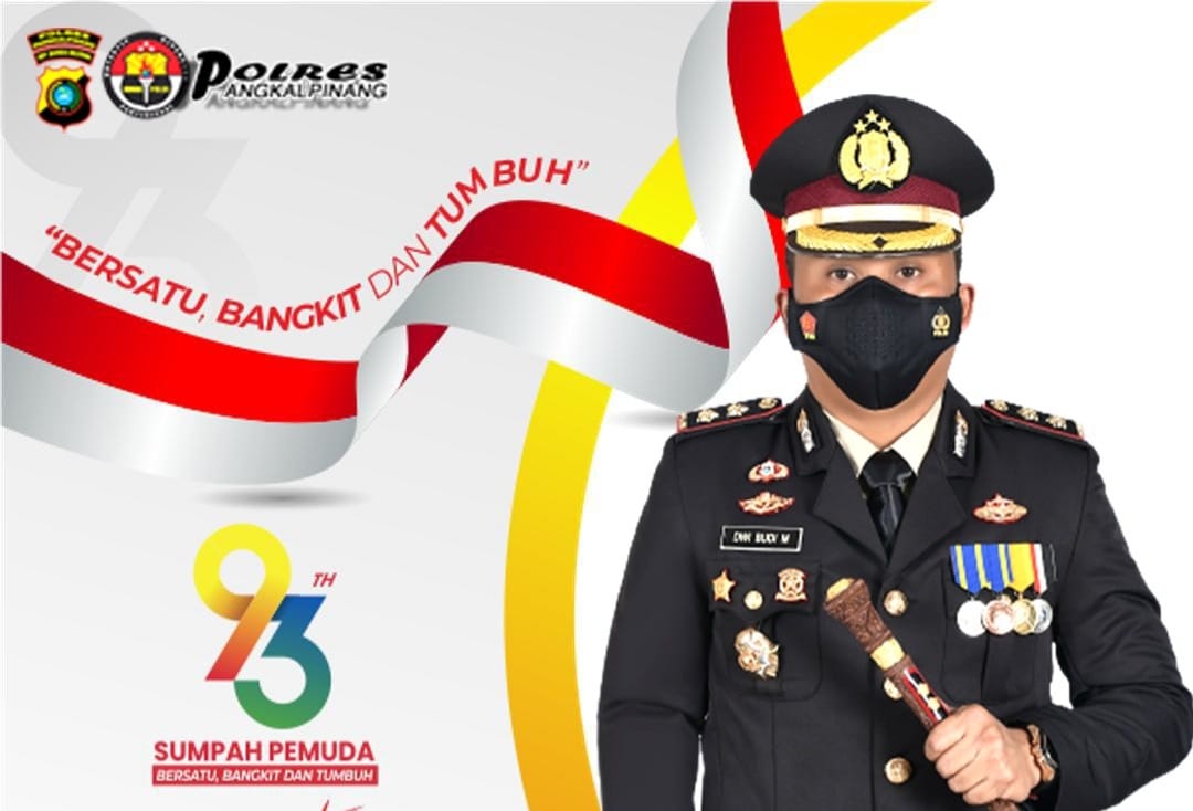 Kapolres Pangkalpinang AKBP Dwi Budi Murtiono, S.IK M.H mengatakan Di momen ini kami harapkan dan mengajak para pemuda di seluruh tanah air terus menyatukan tekad, bersatu untuk membangun lebih baik negeri ini tentunya dengan terus belajar dan belajar untuk menjadi SDM yang unggul. Karena kemajuan bangsa ini sebagian besarnya dipikul oleh para pemuda.