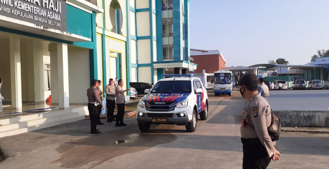 Personil Polres Pangkalpinang yang melaksanakan pengamanan ditempatkan pada lokasi Pemberangkatan serta di persimpangan jalur yang dilewati oleh kendaraan rombongan Jemaah Haji Sedangkan personel Reserse dan intel diminta untuk mengantisipasi dan mengawasi hal-hal yang dapat menggangu situasi Kamtibmas di lapangan, terang Kabag Ops Polres Pangkalpinang AKP Rais Muin, S.IK.
