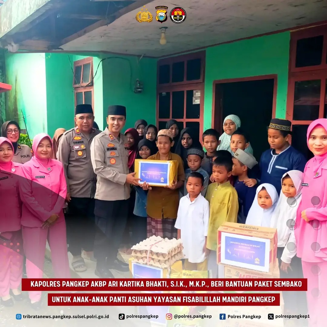 Kapolres Pangkep AKBP Ari Kartika Bhakti, S.I.K., M.K.P., beri bantuan paket sembako untuk anak-anak Panti Asuhan Yayasan Fisabilillah mandiri Pangkep