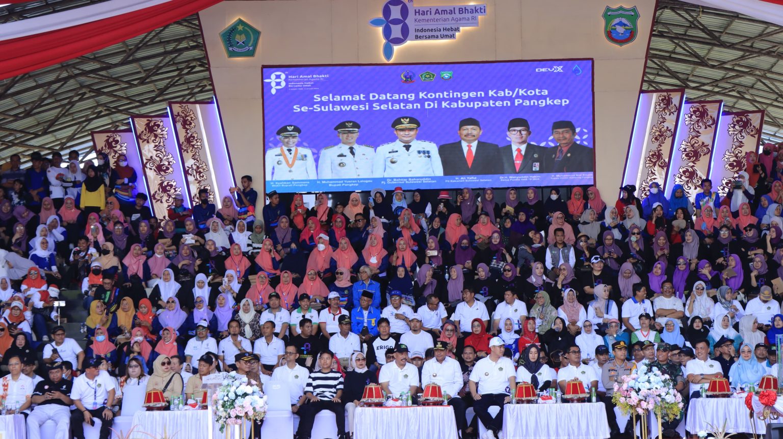 Kapolres Pangkep AKBP Ari Kartika Bhakti, S.I.K., M.K.P., menghadiri Pembukan EKPO Program prioritas dan Porseni Hari Amal Bakti Nasional Kementerian Agama Republik Indonesia (HAB) Ke 78 Tingkat Provinsi Sulsel yang diikuti peserta dari 24 Kab/Kota se Sulsel di Tribun Lapangan Citra Mas Jl. H.M Arsyad B. Kel Paddoang doangan Kec Pangkajene Kab Pangkajene dan Kepulauan pada Minggu, 07 Januari 2024.