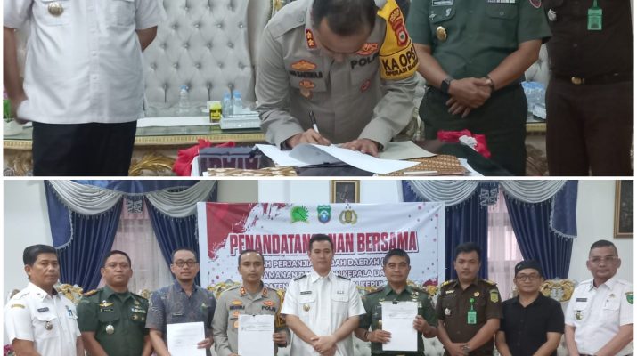 Bertempat di Rumah Jabatan Bupati Pangkep Jln. Merdeka Kel.Tumampua Kec. Pangkajene Kab. Pangkep, Kepala Kepolisian Resor Pangkep AKBP Ari Kartika Bhakti, S.I.K., M.K.P., menghadiri pelaksanaan kegiatan acara Penandatangan Bersama Naskah Perjanjian Hibah Daerah (NPHD) Pengamanan Pemilihan Kepala daerah Kabupaten Pangkajene dan Kepulauan, Kamis (7/3/24).
