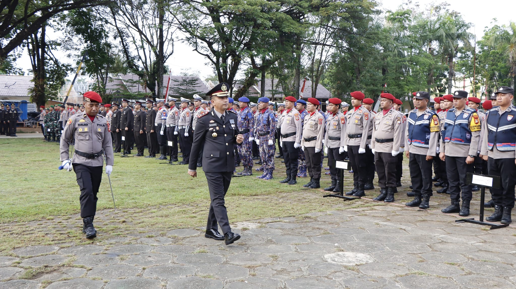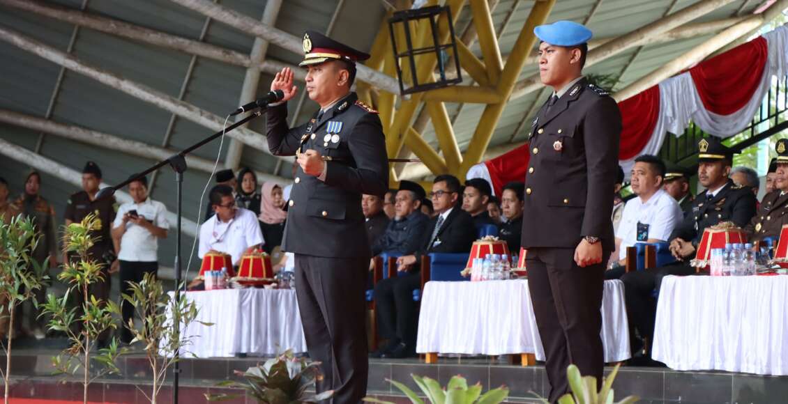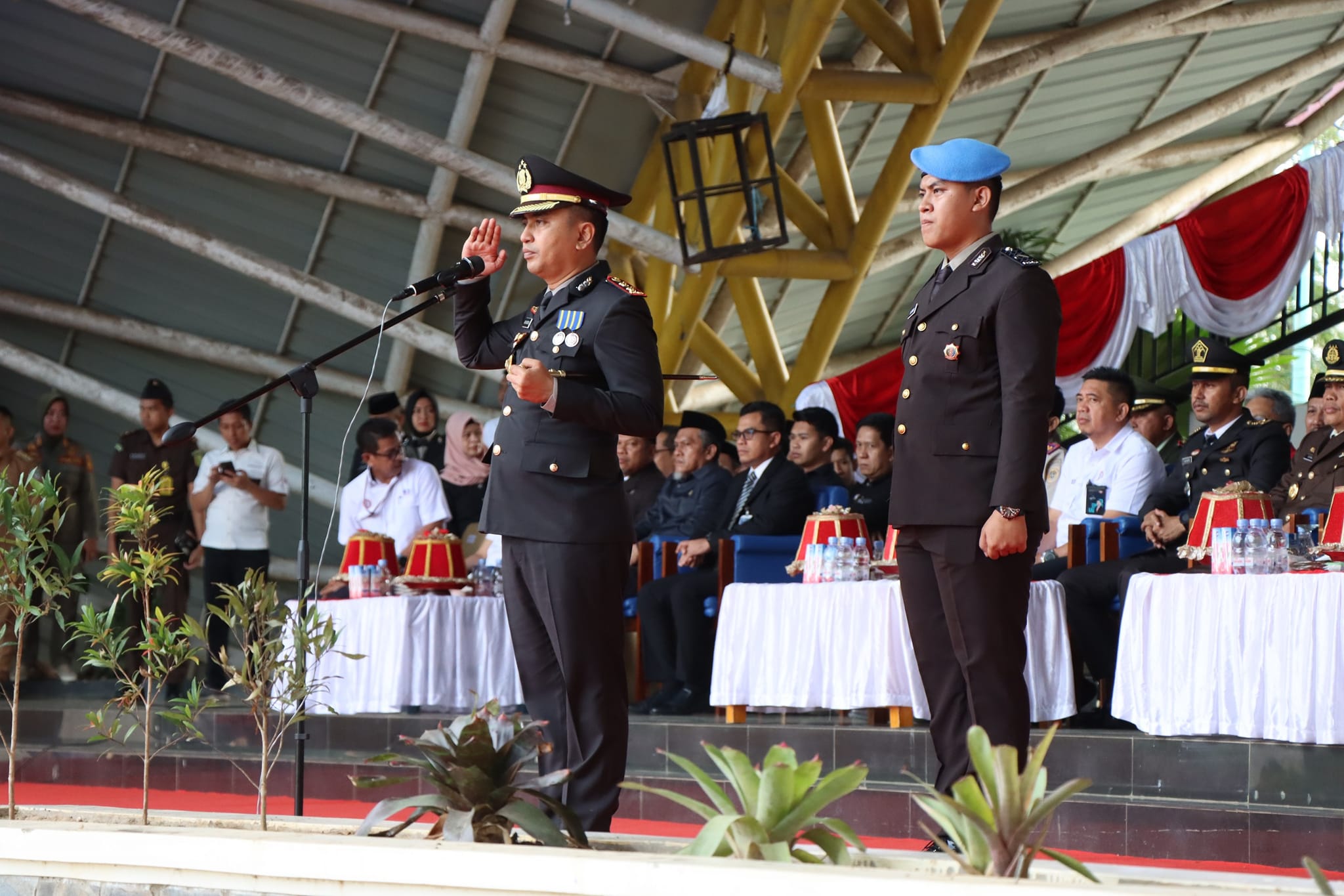 Kapolres Pangkep AKBP Ari Kartika Bhakti, S.I.K., M.K.P., memimpin upacara peringatan yang diawali dengan penghormatan kepada para pahlawan dan mengucapkan Tribrata.