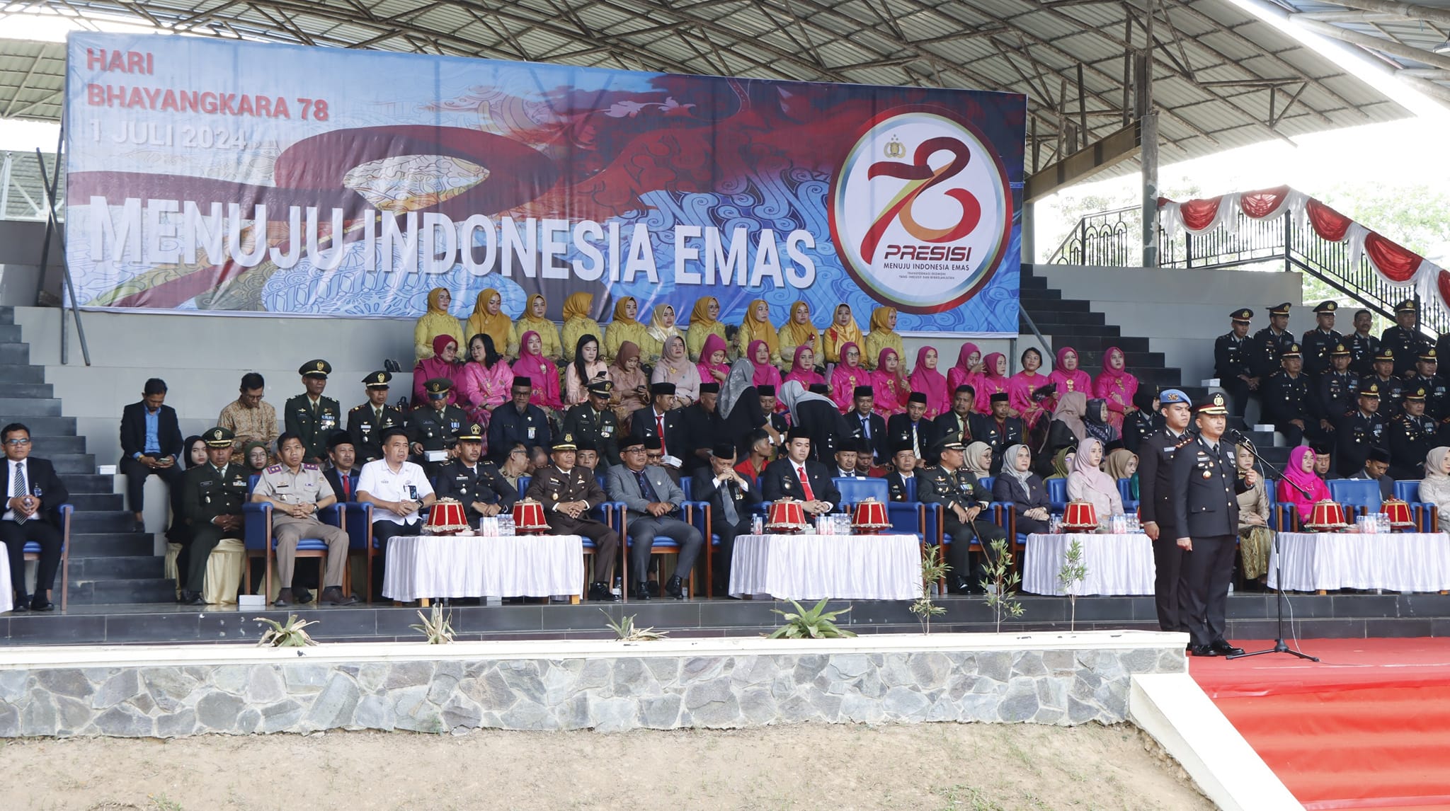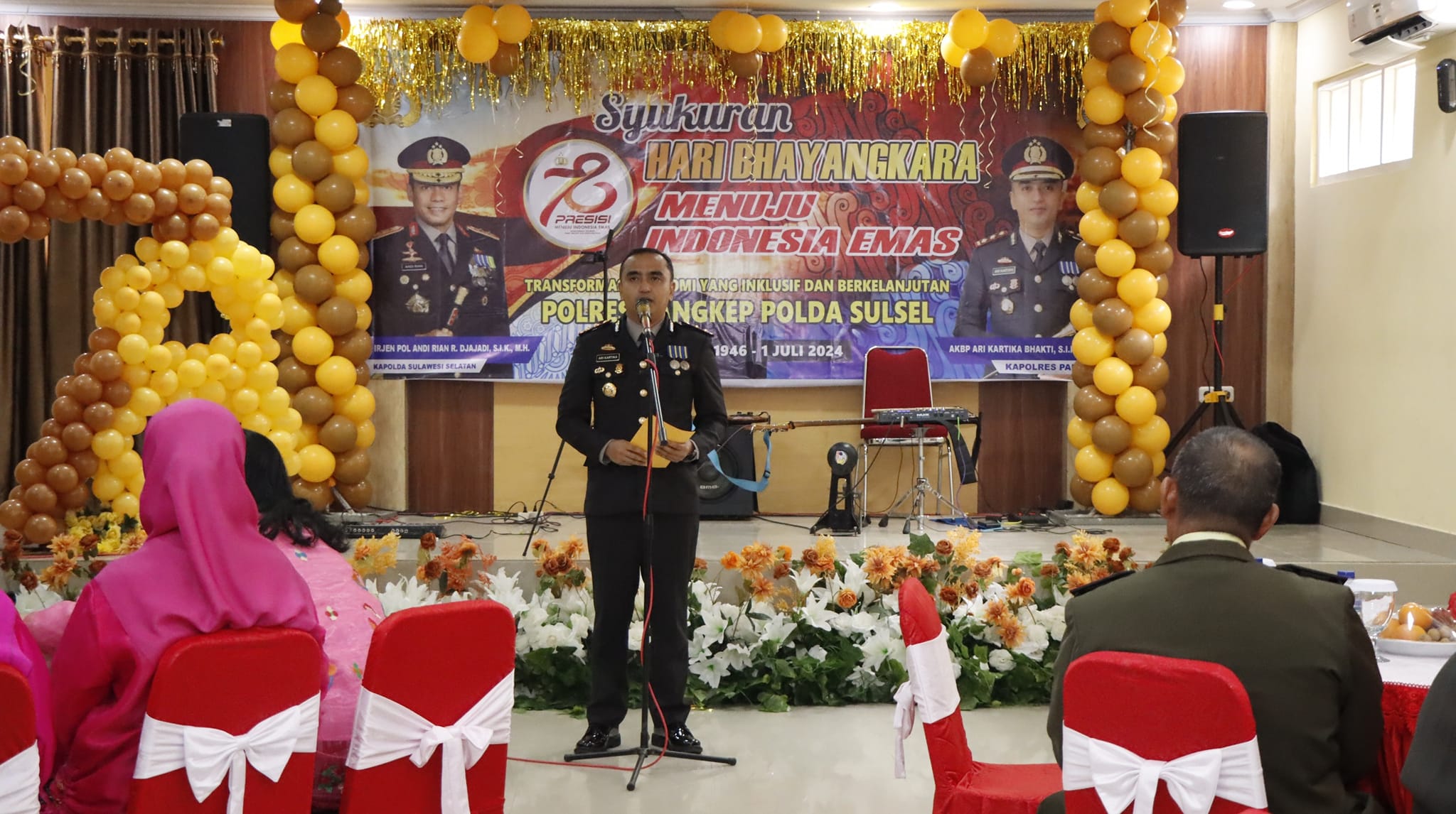 Sedangkan tema HUT Bhayangkara ke-78 tahun 2024 yakni “Polri Presisi mendukung percepatan transformasi ekonomi yang inklusif dan berkelanjutan menuju Indonesia emas”. Acara diakhiri dengan ramah tamah atau jamuan kasih bersama.