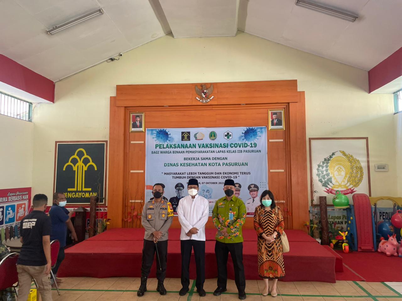 Rombongan tiba di lokasi di sambut oleh Kalapas Kelas II B Kota Pasuruan Yogha Aditya Ruswanto dan Kadinkes Kota Pasuruan dr. Sherly Marlena, selanjutnya meninjau vaksinasindi dalam lapas.