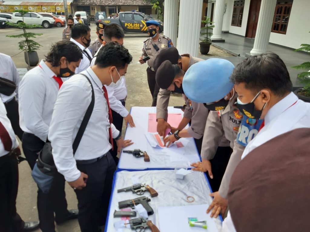 Setelah apel, Kasi Propam IPDA Haryono mengumumkan bahwa anggota pemegang Senpi segera berbaris berbanjar dibagi 2 banjar, dan diperintahkan menuju meja yang telah disiapkan, serta anggota diperintahkan antri dengan tetap menjaga jarak menuju meja pemeriksaan yang telah disiapkan.