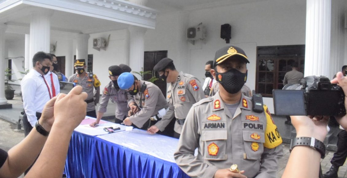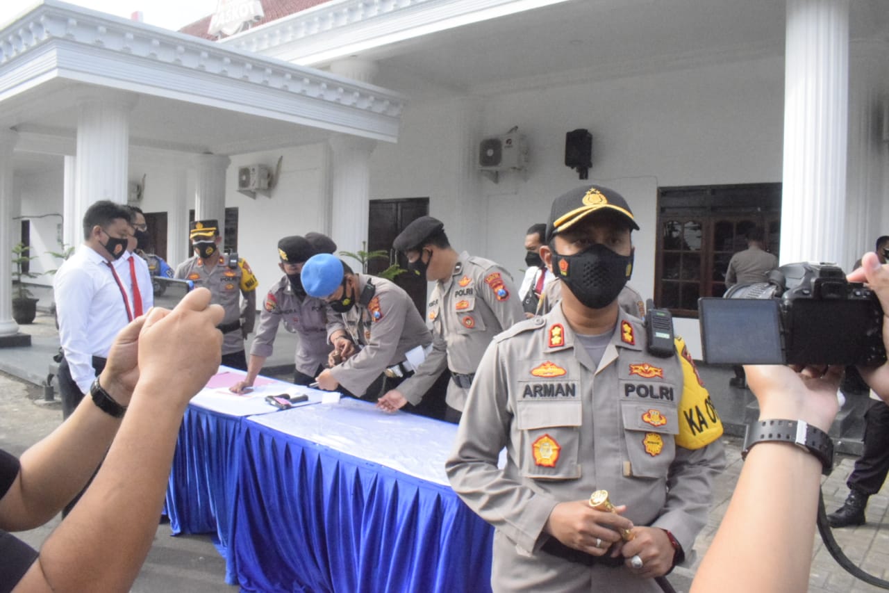 Setelah apel, Kasi Propam IPDA Haryono mengumumkan bahwa anggota pemegang Senpi segera berbaris berbanjar dibagi 2 banjar, dan diperintahkan menuju meja yang telah disiapkan, serta anggota diperintahkan antri dengan tetap menjaga jarak menuju meja pemeriksaan yang telah disiapkan.