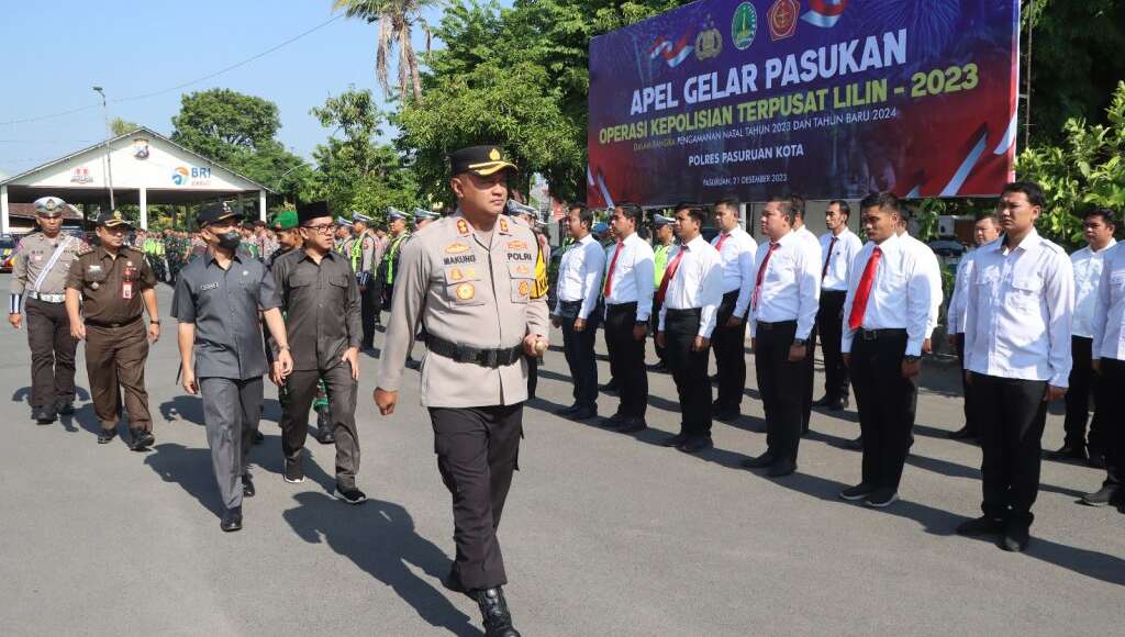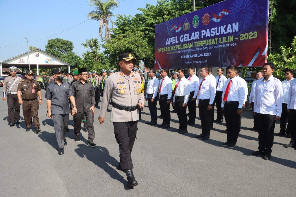 PASURUAN KOTA,ikagawanews.id – Kapolres Pasuruan Kota AKBP Makung Ismoyo Jati, S.I.K., M.I.K pimpin apel gelar pasukan sebagai bagian dari persiapan Operasi Lilin Semeru 2023. Apel ini melibatkan personel dari berbagai satuan di wilayah hukum Polres Pasuruan Kota untuk meningkatkan kewaspadaan dan kesiapan dalam menghadapi momen Natal dan Tahun Baru. Kamis(21/12/2023).