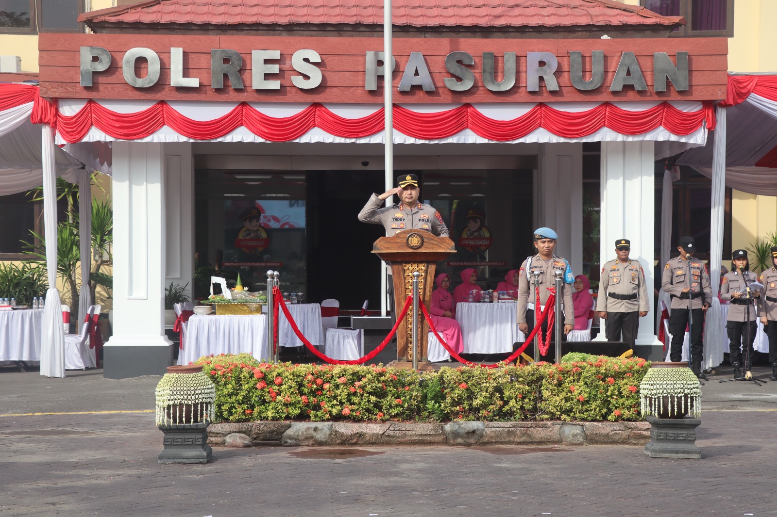 Kapolres Pasuruan Pimpin Upacara Kenaikan Pangkat Reguler Dan Pengabdian Personil Polres Pasuruan