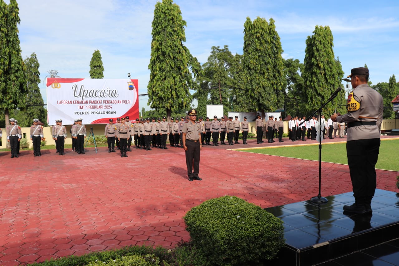 Kapolres Pekalongan Pimpin Upacara Kenaikan Pangkat Pengabdian TMT 1 Februari 2024