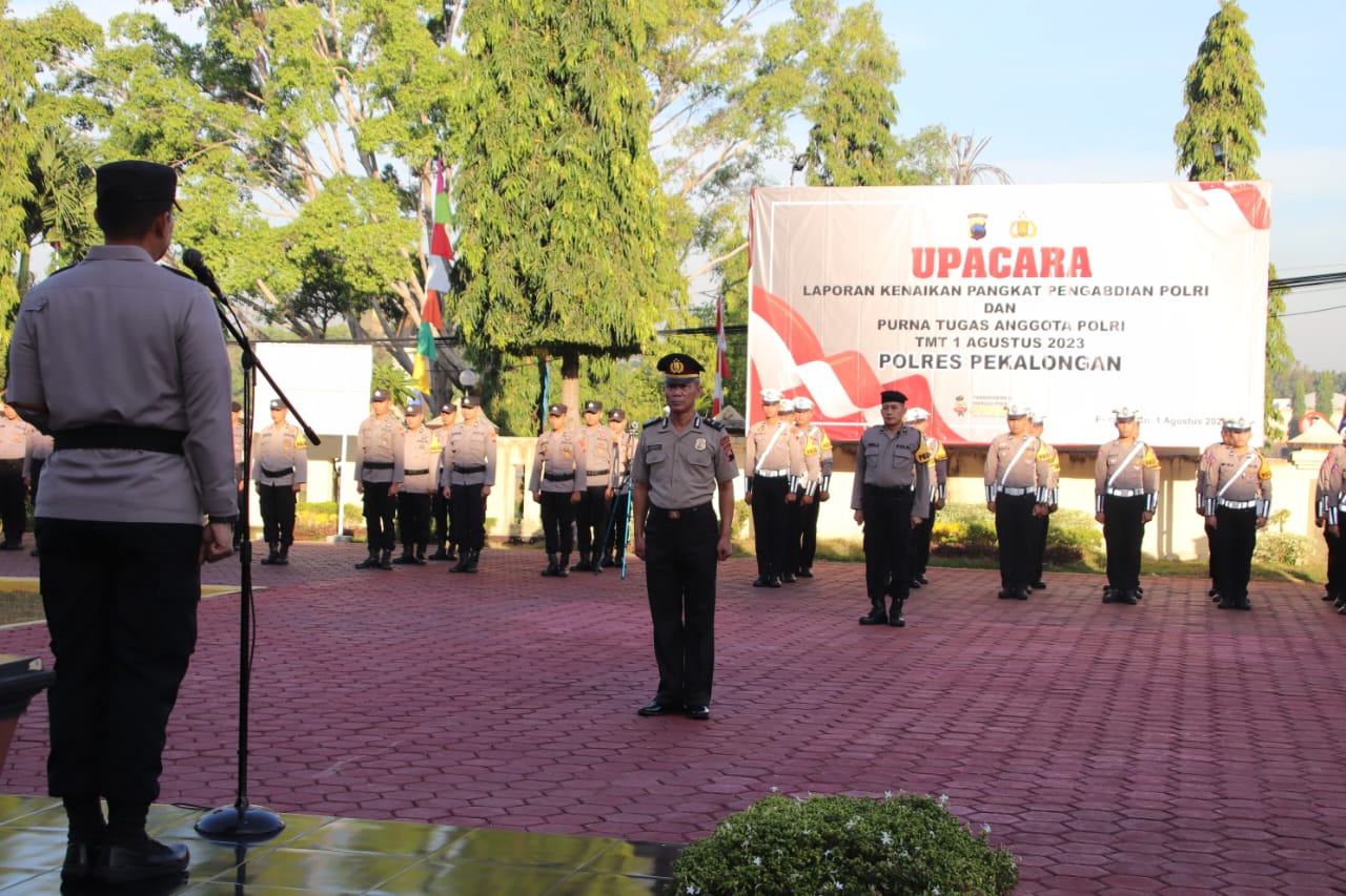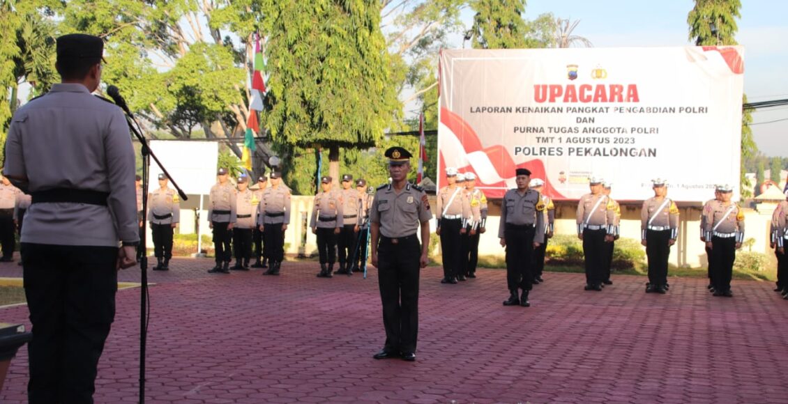 Kapolres Pekalongan Pimpin Upacara Laporan Kenaikan Pangkat Pengabdian Polri Dan Purna Tugas Anggota Polri TMT 1 Agustus 2023