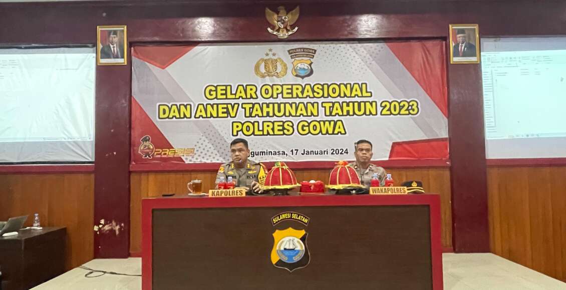 Kegiatan yang dipimpin langsung oleh Kapolres Gowa AKBP R.T.S Simanjuntak, S.H., S.I.K., M.M., M.I.K., didampingi oleh Wakapolres Gowa KOMPOL Soma Miharja, S.Sos, M.M., bertujuan untuk menganalisa dan mengevaluasi kegiatan operasional dan pembinaan yang telah dilaksanakan Polres Gowa dan jajarannya selama tahun 2023.