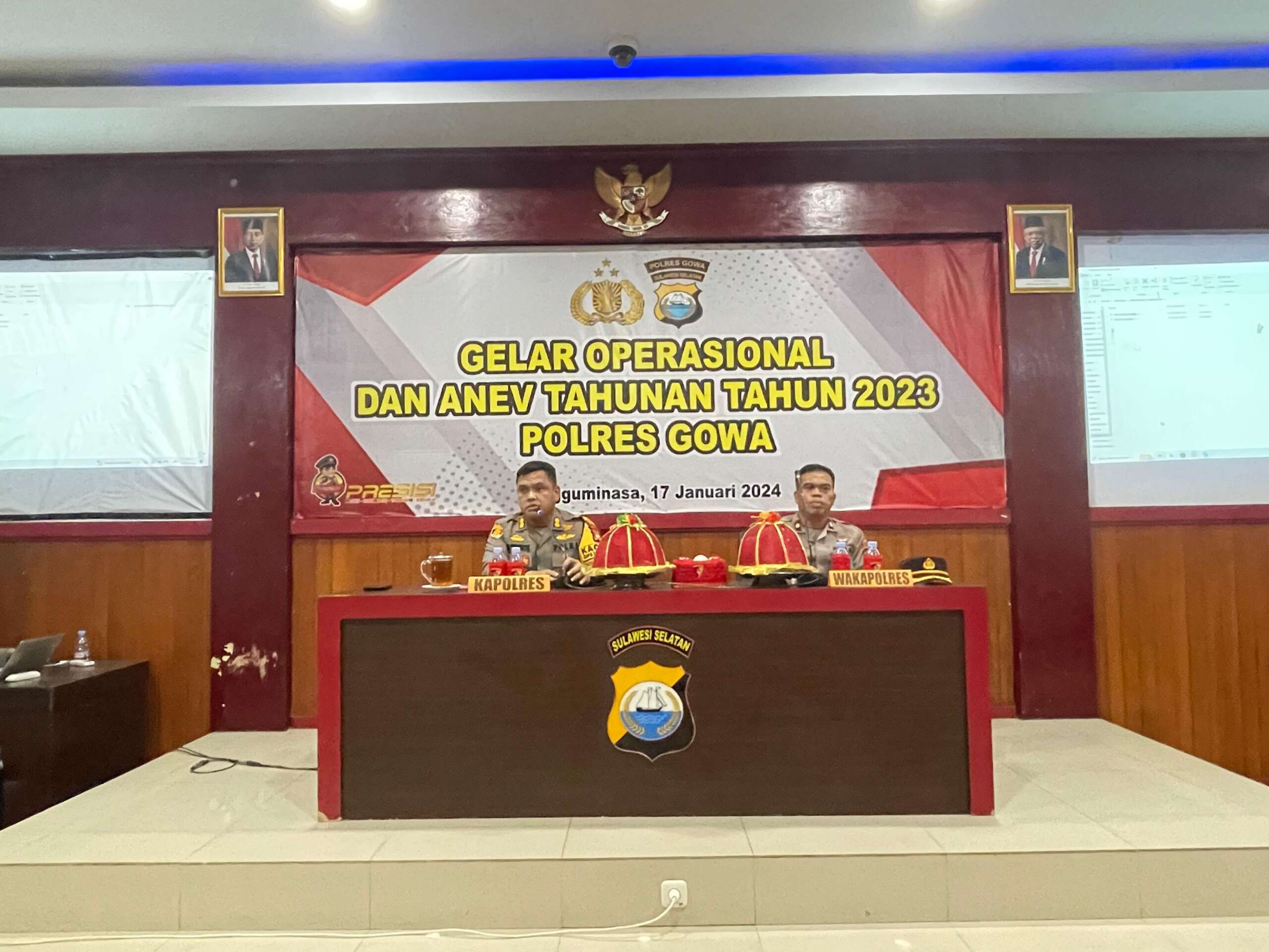 GOWA,ikagawanews.id – Polres Gowa menggelar kegiatan Gelar Operasional (GO) dan Anev (Analisa dan Evaluasi) Tahunan yang hadiri seluruh Kepala Bagian, Kepala Satuan, Kepala Seksi, Kapolsek dan Kapolsubsektor jajaran serta para Kanit Opsnal Polsek yang digelar di Aula Endra Dharmalaksana Polres Gowa, Rabu (17/01/2024) Pagi.