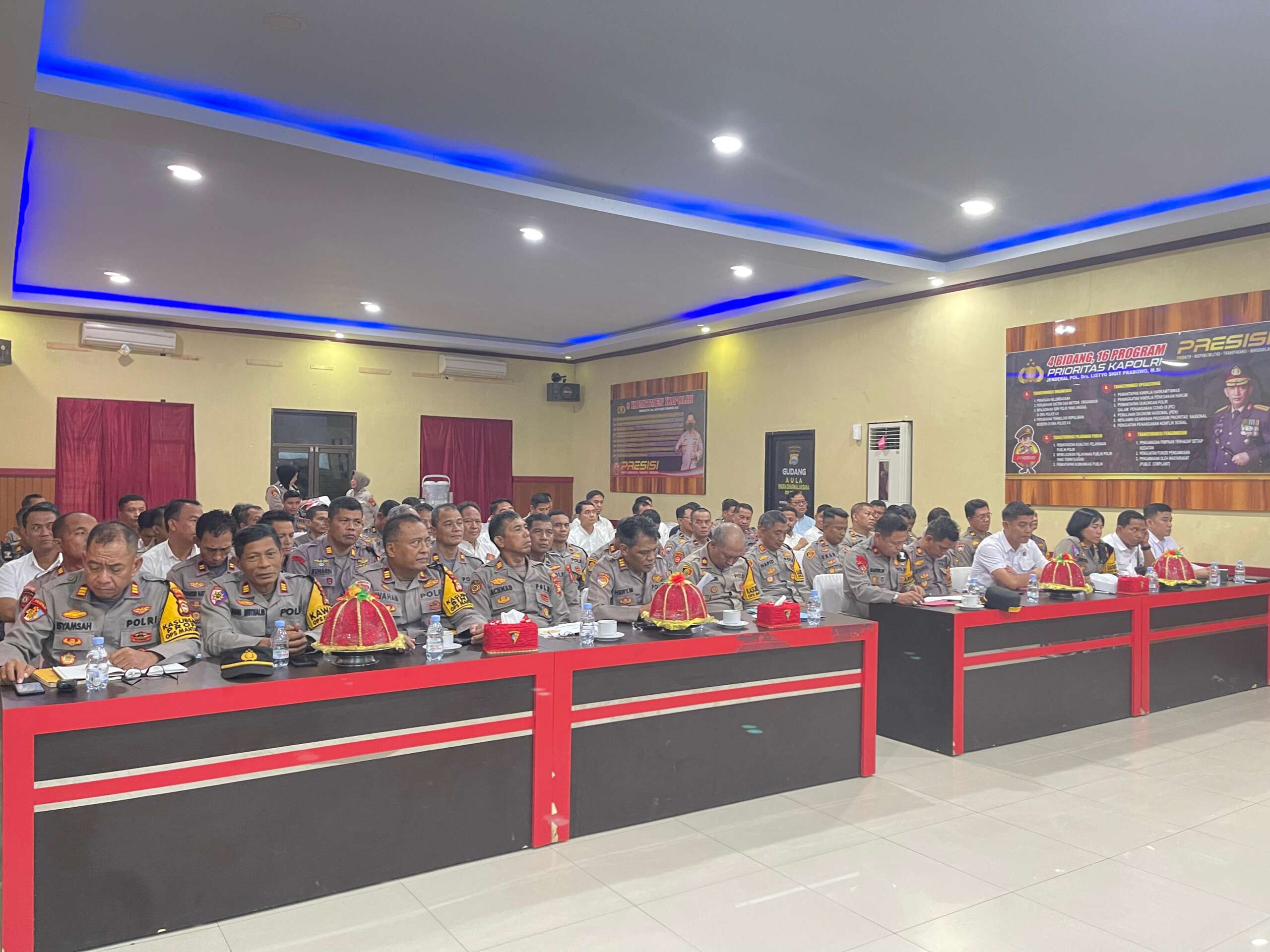 Acara dilanjutkan dengan paparan dari masing-masing Kabag, Kasat, Kasi dan Kapolsek jajaran sekaligus membahas Kamtibmas dan Kamsetibcar lantas serta kesiapan pengamanan tahapan pemilu tahun 2024.