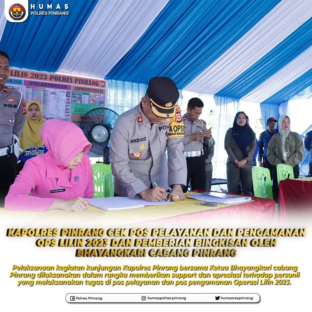 Pada kesempatan tersebut, Kapolres Pinrang menyampaikan bahwa, Hadirnya Posko Operasi Lilin 2023 bertujuan untuk mendekatkan pelayanan kepolisian kepada masyarakat di titik-titik yang dipandang perlu terutama pada momen perayaan natal 2023 dan menjelang tahun baru 2024.
