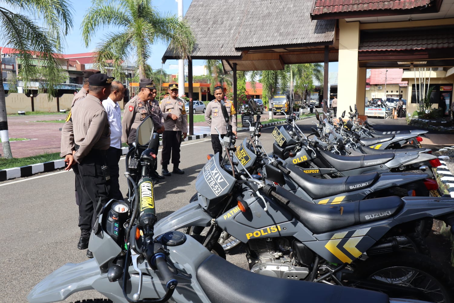 Dimana, dalam pemeriksaan tersebut Kapolres terlihat mengecek satu per satu kendaraan, mulai dari kondisi fisik, mesin hingga kebersihan kendaraan.